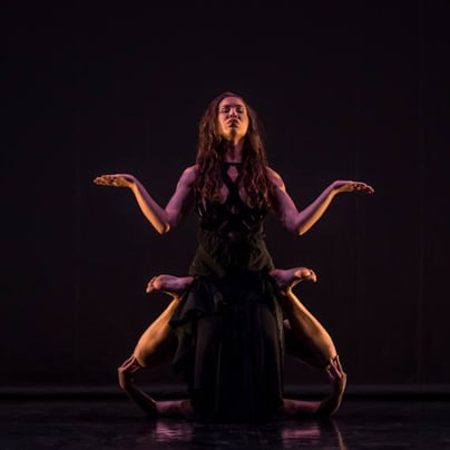 Pristna koreografska osvežitev, imenovana Meduza, v izvedbi avtorskega dueta, Urša Rupnik in Liza Šimec, je svoje okončine širila po odru Španskih borcev. S to svojo desetminutno plesno miniaturo sta se avtorici in izvajalki uvrstili v finale Festivala koreografskih miniatur Beograd 2016, ki je potekal v junijskem času v beograjskem Narodnem gledališču. Njuna Meduza je statična, je zlepljena s tlemi, vendar sočasno tudi fizično aktivna, ko Meduzo objema vihrava dinamika štirih štrlečih rok in dveh nog ter je na sceni ves čas vidna le ena akterka, Liza. Meduza je hkrati tudi arhaični simbol ženskosti, ki na koncu premaguje ustaljeno ter obstoječe. V ospredju scene je Liza v kostumu, ki zakriva noge in pričara vonj po daljnem vzhodu, po indijski boginji mnogoterih rok. Liza in Urša se ob koncu povsem zlijeta s svojo Meduzo in se zasliši zanosno (dekliško) hihitanje, ko vzdrhtijo še smehljaji visokega C. Eva Duda Dance Company v predstavi Dihaj in … (foto: Daniel Domolky)