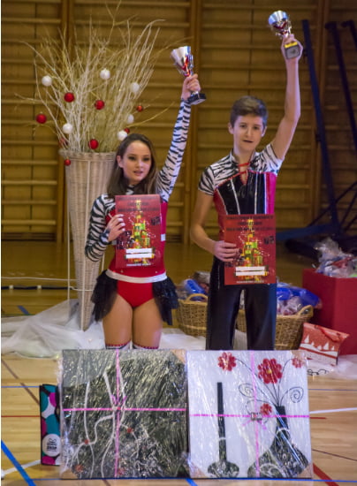 Miha & Paulina: Letos sva bila 9. na tekmi za svetovni pokal v Riminiju, postala sva državna prvaka v kategoriji mlajši mladinci in osvojila naslov pokalnega zmagovalca za leto 2016. Letos sem (Miha) kot pomoč ‘vskočil’ tudi kot dodatni plesalec v sosednji klub Briljantina in skupaj smo dosegli naslov svetovnega prvaka v mladinskih formacijah. Žal Paulina ni mogla sodelovati, ker so imeli dovolj plesalk. Sem pa zelo hvaležen njej, celi njeni družini in vsem ‘glavnim’ v matičnem Plesnem klubu M – Plesno mesto, da so me spodbujali. Lepo je, da klubi med seboj tudi sodelujejo.