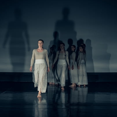 Tržačanka, plesalka, pedagoginja in koreografinja Daša Grgič je zelo aktivna in ustvarjalna tako na oni kot na naši strani meje, saj se jo srečuje na vseh večjih plesnih dogodkih na Primorskem in je za predstavo Rojstvo pripravila zanimivo koreografijo Flowater, kjer so zaplesale in soustvarjale Vesna Stojnić, Ana Petrovska, Ema Weixler in Nika Pegan. Šum morja in peščena obala pričarata valovanje morskih valov in morje je tudi zibelka življenja na Zemlji. Koreografske plesne linije posegajo po vrhovih, tako kot morje vzvalovi ob plimi, in se ravnajo s tlemi kot valovi v času oseke, ko na odru in v svetlobi valovi plesna iluzija življenjskega skladja v vodnem mediju. … (foto: Jaka)