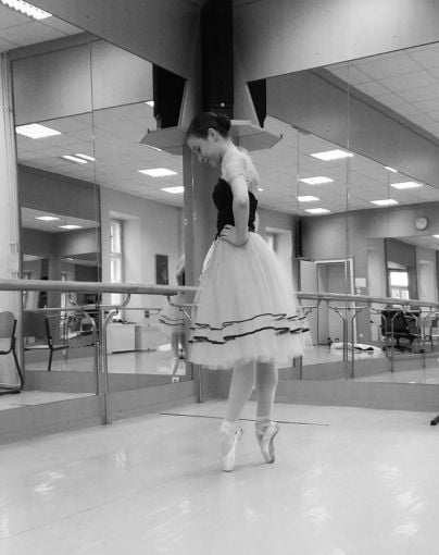 Za variacije sem vsak dan gledala posnetke profesionalnih plesalk na Youtubu. Ne samo en video, ampak ‘vse’ videe, ravno tako ne ene plesalke, pač pa ‘vse’ plesalke. In v vsakem posnetku sem videla nekaj novega, videla več različnih interpretacij na primer istega giba. In potem sem vse to preizkušala pri sebi; pred ogledalom sem vadila vse podrobnosti z rokami, pogledom, glavo (ko o tem govori, tudi fizično pokaže elegantno gibanje, prepletanje rok in dlani, op. u.). Skratka, hotela sem najti nek svoj izraz preko giba, pa tudi izraz na obrazu – na primer, kako se bom smejala (smeh). To ‘duhovno’ vživljanje v vlogo mi je zelo pomembno, saj na odru ne gledaš samo plesalca in njegove tehnike, ampak kako z dušo, energijo zapleše vlogo. (smeh) Na klasu pa sem trenirala in pilila predvsem tehnične elemente. Profesor (Nikolai Chilnikov, op. u.) mi je dajal napotke, smernice, kaj moram narediti. Potem sem tudi sama po klasu vadila in vadila, stokrat izvedla en in isti element, če je bilo treba (smeh) in če mi ni šlo.
