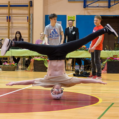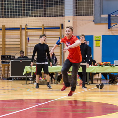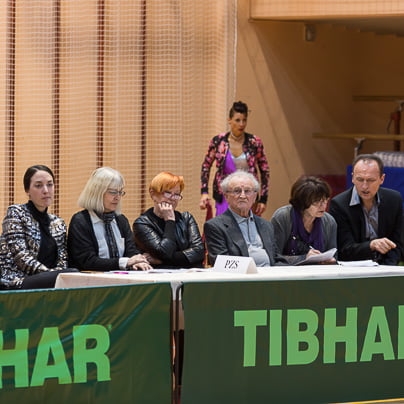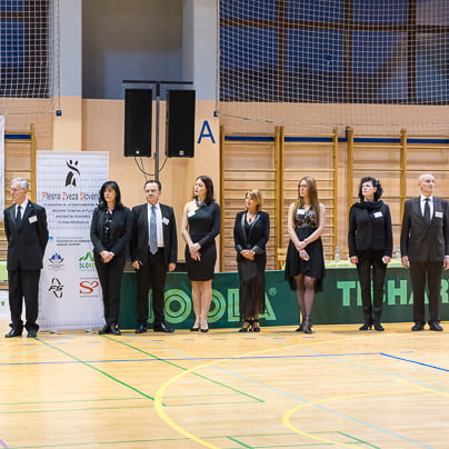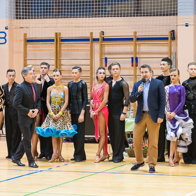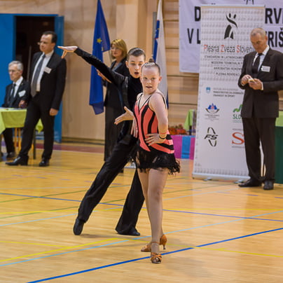 Nase pa je opozoril novo nastali par, Matic Vučina in Tosia Robar Žerak iz Pingija, trenira pa ju Vedran Čelić. Tosia je postala zelo zrela plesalka, dolgo je plesala z Brinom Hladetom, nato je imela skoraj leto in pol pavzo. Obleka Sashe Pust v črno-bež kombinaciji ji je res pristajala Marko in Natja OrehekMarko in Natja Orehek iz PK Fredi se nista prav dobro počutila na plesišču. Po tekmi sta povedala, kako je nastopati sam: "Huje, kot,da sva nekje v Nemčiji med dvesto pari. Prisotna je trema, vsi te gledajo, paziš, da se kaj ne zmotiš …" Franjo Kozar (tretji z desne) je legenda slovenskega športnega plesa. Vesela sem bila tudi snidenja z legendo slovenskega tekmovalnega plesa, gospodom Franjem Kozarjem. Njegovo še vedno ostro oko je matematično komentiralo videno državno prvenstvo. "Slabo in zadovoljivo za pionirje, zadovoljivo in dobro za mlajše mladince, dobro in prav dobro za mladince in starejše mladince. V članski konkurenci, ki je res kategorija zase, pa takole: en odličen par, dva prav dobra in dva dobra. Kar pogrešam pri mladinskih kategorijah, je bolj precizna tehnika, večja razgibanost, primerne koreografije glede na starost in temu primerna ritmika. Če bi se to izboljšalo, bi bila kakovost boljša." Breakerji …… Na prvenstvu je nastopila tudi breakdance ekipa, državni in svetovni prvaki, na evropskem pa je osvojila drugo mesto. Filip Kovačič, aktualni mladinski državni in evropski prvak ter svetovni podprvak, David Copot, 3. na državnem, in Elias Ljubec so del breakdance ekipe The chosen ones jr. iz PK Zeko Murska Sobota.S svojim nastopom so napovedali ter obelodanili novico, da je breakdance postal prva plesna disciplina na olimpijskih mladinskih igrah. Kaj dejansko to pomeni, pa bo razložil Dejan Zečevič v prihodnjih dneh. Reportažo si lahko ogledate v torek, 7. 3.,ob 22.00 na TV3. (Foto: Jernej Rihar)