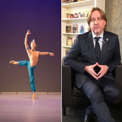 Jan Trninič, zmagovalec baletnega tekmovanja, in dr. Svebor Sečak, dekan Akademije za ples