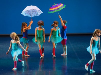 Predstavo je suvereno uvedla Nuit Vale (2. razred) s svojim solo plesom iz Opusa 1, v belih kostumih, ki so spominjali na vodno peno, pa so s točko H2O zapolnili oder učenci  1. razreda. V tej, kot tudi v preostalih koreografijah – predvsem za mlajše skupine – je bil poudarek na obvladovanju prostora in naravnem gibanju s teki, grupiranji, razpršitvami in spet združevanji v osnovne, a učinkovite forme (krog, vrste,  vijuganja, hojnice …). Učenke, pripravnice 2B, so bile vodne kapljice z drobnimi gibi prstkov, nadvse prisrčne in duhovite pa so bile punčke iz pripravnice 1B, oblečene ‘paradoksalno’ v pisane tutuje – oblačilca, že nekaj časa priljubljena tudi za vsak dan, v katerih lahko skačeš tudi po lužah – in prav to so prav nič ‘baletno’ počele male deklice v točki Mokri ter v tacanju, poskakovanju in skakanju opazno uživale.