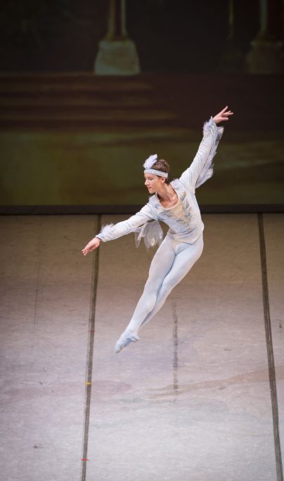 Na sporedu prvega dela Baletnega večera se je v Divertissement iz baleta Trnuljčica vtisni tudi pas de deux Plave ptice in princese Florine v izvedbi Nine Kramberger (alternacija Nina Bačani) in Jana Trniniča (2. letnik). Lirični duet trepetajočih poletov Plave ptice, Jana Trniniča, ob dvigih in piruetah ter v plesnem sožitju s partnerko princeso Florino je bil še en izvrsten in obetaven poetični izliv dveh mladih plesalcev. Jan Trninič (foto: Tiberiu Marta)