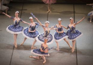 Ko se zavesa dvigne, priletijo na oder sanjske iluzije, deset ljubkih vil (1., 2., 3. letnik) v snežni belini baletnih tutujev, ki v mladostni milini in klasičnih postavitvah odpirajo pot sanjski princesi Aurori (Lara Maher, 4. letnik), ko vstopajo v dvorno dvorano, osvetljeno na videoprojekciji na zadnji steni odra. Elena Likar (foto: Mediaspeed)