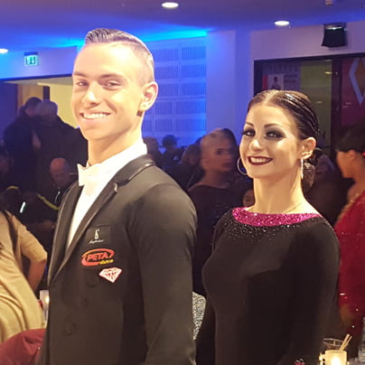 Oba naša para sta za las zgrešila preskok na mesto, zaradi katerega bi bilo veselje v ekipi. Druga z državnega prvenstva Iliya Dobrev in Ana Mesec sta pristala na 13. mestu, kar pomeni, da nista prišla med polfinaliste. Za naš portal sta takoj po tekmi komentirala: "Midva sva zadovoljna, 13. mesto je vedno malo nehvaležno, ampak plesala sva dobro in napredujeva. Osebno sem verjela, da lahko narediva polfinale, in tudi menim, da bi čisto sodila med polfinaliste, me pa kljub temu veseli, da se skozi vsako tekmo, ki jo odpleševa, zelo veliko naučiva o sebi kot paru ….V tej kategoriji ostajava še prihodnje leto, zato ni panike …"Lajf" je lep. Malo "heca", ampak je res tako." Svetovna prvaka do 21 let v latinu Vladislav Kolesnikov in Naja Dolenc sta se morala zadovoljiti z nehvaležnim četrtim mestom v standardu. (foto: Marko Mesec) Aktualna svetovna prvaka v kategoriji do 21 let v latinu in državna prvaka Vladislav Kolesnikov in Naja Dolenc sta pristala na nehvaležnem četrtem mestu. "Če sva zadovoljna, kot vedno prvo vprašanje. Ne, nikoli ni dovolj dobro, in neuspehe oba kot posameznika in kot par težko preneseva, ampak kot pravijo – preživijo le najmočnejši in midva bova to dokazala ter se borila naprej. Nov dan, nova priložnost. Rada bi se zahvalila vsem trenerjem, najboljši celotni Diamant ekipi, čevljarstvu Peta in staršem," sta bila odločna in jasna takoj po tekmi Naja ter Vladislav za naš portal. V Rubriki Ritem izjav pa jutri objavljam komentar spremljevalca Naje in Vladislava ter svetovnih prvakov, Alekseja Galčuna. Martin Mestek in Anna Stareckova (foto: Marko Mesec)