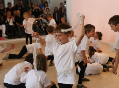 Otroci so bili že 15 minut pred predstavo pripravljeni na svečani trenutek, da pokažejo rezultate svojega večmesečnega raziskovanja in ustvarjanja do zadnjega kotička – s hvaležnim občinstvom – napolnjeni dvorani .