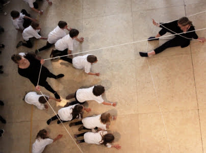 Avtorji in mentorji predstave (od leve proti desni) Ema Marinčič, MGML, Lado Jakša, Nuša Jurjevič in Vesna Geršak (UL PEF), Mateja Zalaznik (OŠ Trnovo), Urša Rupnik (Studio za svobodni ples), Stanka Ilar in Anita Godler (OŠ Trnovo)