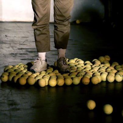 Ob vstopu v dvorano gledalec zagleda po tleh posute rumene žogice za tenis, nešteto jih je; če ne bi bilo govora o spletu, bi se zastavilo vprašanje, čemu žogice. Tako se v misli vrinejo neštete točke, ki se nevidno povezujejo ter ustvarjajo vizijo zaslona, mrežnih povezav: te žogice pa kot vse tiste misli in besede, ki so skozi eter letele ter se odbijale od enega do drugega akterja. V prostor vstopi najprej ona v delovni obleki, z delovnimi rokavicami in vrečo za odpadke ter začne pobirati žogico za žogico in jih daje v svoj koš. Zelo natančna ter premišljajoča je ob tem delu. Potem vstopi še on, delovno vnet  za pobiranje svojega zbira žogic. Je aktiven, nikakor miren ali premišljajoč, ko ob žogicah uprizarja  svoje plesne segmente, kot bi se spominjal ali iskal svojo pot med tem okroglim rumenilom. Njegov ples je vse bolj valovit, drseč in iščoč. Ko so vse žogice pospravljene, se njuna igra nevidnih povezovalnih niti lahko znova začne. V glasbi odzvanjajo besede, enoznačna vprašanja, kratke misli: ljubim svoje telo, ljubim svoje delo … ljubim te, sovražim, si lačen, srečna … Ko so besede kratke in izpisane brez dotika ter zgovornih pogledov, pride do nesporazumov, saj se na zaslonu beseda le izpiše, niti nima naglasa.