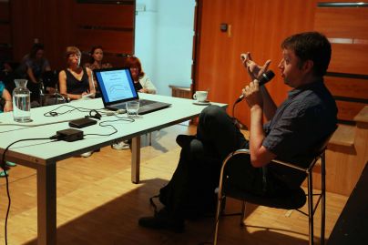 Matjaž Farič se v svojem festivalu sodobnega plesa Front@ dosledno dotika tudi perečih družbenih tem, tokrat sta 1. septembra ob 11. uri v Grajski dvorani potekala predavanje in razprava o kulturni zapostavljenosti obrobja države v odnosu do glavnega mesta. Predavanje z naslovom Obrobje in kultura: kruta resnica je analitično pripravil ter zaobjel v statistiki številk doc. dr. Andrej Srakar, ekonomist, statistik in kulturolog, tudi sodelavec Inštituta za ekonomska raziskovanja in predavatelj na ekonomski fakulteti. … Andrej Srakar na predavanju. (foto: Borut Bučinel)