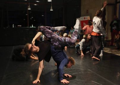 Zaključek prvega festivalskega dne je znova stekel na Odprtem odru, ko je ob 21. uri v svetlobi nočnih naglavnih svetilk španska plesna skupina Iron Skulls Co zaplesala izbrani odlomek iz predstave Sinestezija / Sinestesia. Prihodnji večer so se le preselili na oder Gledališča Park, ko so se na večernem nebu že kazali oblaki in so popoldanske dežne kapljice opozorile organizatorja na možne vremenske spremembe. Izbira gledališkega odra se mi zdi primernejša rešitev za njihov dogodek kot odprta večerna scena, ki nima enakih tehničnih možnosti. In če je na odrski ploskvi predstavljeni odlomek deloval zlovešče ter nedorečeno temačno, je v zatemnjeni odrskih svetlobi ob prostorskih zameglitvah le spominjal na pobeg pred ali iz apokaliptičnega sveta. Skupina je bila leta 2013 sestavljena v Barceloni iz b-boys plesalcev, ki so prišli z raznih koncev španskega polotoka, tudi združili svoje ustvarjalne sile in se resno usmerili na umetniško sceno; in začelo se je njihovo raziskovanje ter razvijanje lastnega plesnega izraza. Predstava je stekla v stilu novodobnih pouličnih plesov, borbenih in akrobatskih veščin ter sodobnih plesnih oblik, ki jih združuje energetski potencial moške prodorne energije, med njimi je vidna tudi predstavnica ženske populacije, ki vešče obvladuje njihov gibalni stil, seveda pa izstopa s svojo lahkotno konstitucijo in akrobatsko veščino ženske gimnastike; sicer v apokalipsi prav gotovo ne manjka niti predstavnic nežnejšega spola. Svojo Sinestezijo so plesalci (Adrián Vega, Facundo Martin, Héctor Plaza "Buba", Diego Garrido, Moisés "Moe", Luiz Mun͂oz, Agnés Sales) eksperimentalno gradili ter strukturirali v posamičnih in skupinskih pobegih ob dovolj jasno izkazanem iskanju možnega preživetja.