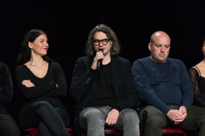 Ustvarjalci baleta Orfična himna na novinarski konferenci v ljubljanski Operi