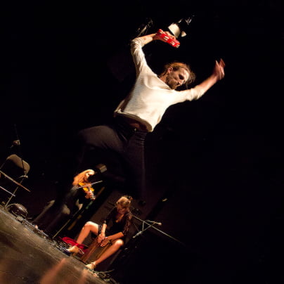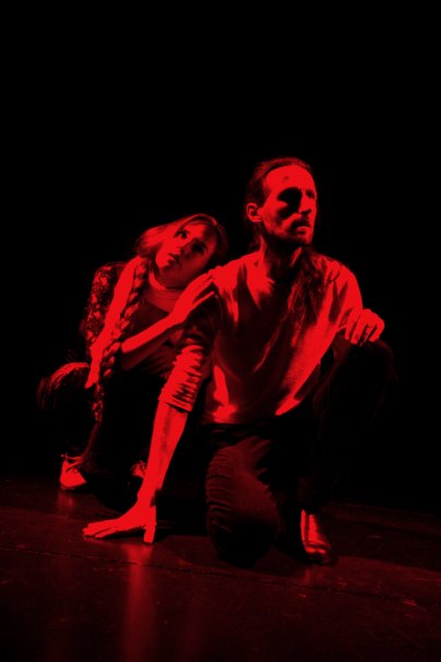 Prva vstopi v prostor glasbenica, nato še plesalca Maria in Mitja, ko svoj plesni duet stopnjujeta v polnokrvnosti flamenka, v očiščujočih močeh korakov, ki udarjajo ob tla ter stresajo dve telesi, njegovo in njeno. V gibalni atmosferi moči, stresov in lirike se vrtijo ter stopnjujejo še njihova medsebojna stanja in vzdušja. Mitja v plesu razpira svoje labodje čutne roke, na trenutek je flamenko plesalec, potem že plesalec hitrih skokovitih odmikov, ki jih v času umiri ter spreminja v razpotegnjene oblike razmišljanja, Maria pa svoja plesna stanja in oprijemljive strasti tudi kmalu usmeri v čutne globine vokalne interpretacije.