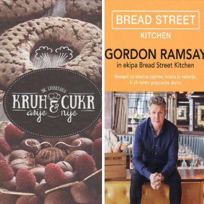 KRUHarije in CUKRnije avtorjev Tomislave Hodak, Lidije Jenko, Miša Kolarja, Cecilije Per in Andreje Perčič (fotografije: Tomo Jeseničnik; izdala Cankarjeva založba, urednica Nina Žitko Pucer)ponujajo več kot 100 receptov za raznovrstne kruhe, pekovske izdelke in slaščice. Napisani so natančno in razumljivo tudi za začetnike. Začnite dan s svežim ajdovčkom z orehi, hrustljavo francosko bageto ali finskim rženim kruhom z luknjo. Pust popestrite še z munkkiji, finskimi krofi. Kalejdoskop slaščic vas bo začaral z blazinicami s sezamom, barvitimi makroni, domačimi snickersi, kockami Emona pa tudi poticami, zamorčkom v srajčki, princes krofi in indijančki, tortami z obilo čokolade ali samimi zdravimi presnimi sestavinami. Izbira je brezmejna. Pekovski in slaščičarski mojstri skrbno čuvajo svoje recepte in neradi izdajajo male, a ključne skrivnosti postopkov. To pa ne velja za avtorje te knjige, učitelje peke in slaščičarstva z BIC Ljubljana; svoje znanje dnevno razdajajo dijakom in jih spodbujajo k ustvarjanju. Navdih za vrhunske izdelke črpajo v tradiciji in ji dodajajo ščepec sodobnega, obzorje pa si širijo tudi onkraj meja. … (Cena: 32,96 evra)