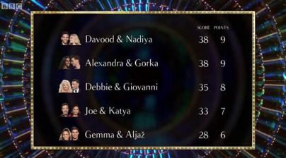 Zadnja sta se zavrtela Debbie McGee in Giovanni Pernice, in sicer v ritmu salse na pesem ‘I Can’t Take My Eyes Off You’. Za tango je Debbie dobila prejšnji teden maksimalno število točk, 40. Seveda je vse zanimalo, ali lahko tudi s salso ‘pokasira’ same desetice in se spet zavihti na vrh lestvice. Koreografija je bila hitra, polna obratov in liftov. Pri tem plesu se je Debbie morala maksimalno sprostiti, saj ji baletna drža tukaj, razen pri dvigih, ni kaj prida pomagala. Kljub nekaterim manjšim napakam pri partneringu ‘vsaka čast’ za pogum pri vratolomni rotaciji, iz katere sem že mislil, da ne bo uspela priti nazaj v držo. Kot vedno same pohvale sodnikov, vendar tokrat brez desetk (ocene: 9, 9, 8, 9; skupni seštevek: 35).