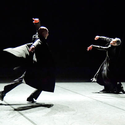 Elegantna črna kostumska oprava (Eri Wanikawa) plesalca Sabure in njegove plesne partnerke Rihoto Sako je lahkotna, svilena ter valujoča, ki gibu omogoča popolno izrazno svobodo, tudi poleti skupaj s plesalčevo gibalno formo. V enaki funkciji so bila, sicer v drugačnih oblikah, tudi plesna oblačila ekspresionizma, t. i. izraznega plesa pri nas, enako zračila plesno svobodo, eleganco ter lahkotnost. Saburo Teshigawara se v svoji koreografski uprizoritvi izkaže kot ekspresivni umetnik in izvajalec, ki mu v enakem slogu sledi tudi njegova soplesalka na odru, je umetnik sodobnega časa, ki v sodobnost vliva dobrodošle nove, povsem svoje gibalne forme, obogatene z umetniško noto minulih zgodovinskih obdobij, tudi z vzhodnim prizvokom dojemanja časovnih dimenzij. Njegov ples se ne podreja glasbi, se poglablja ter usmerja h glasbeni strukturi, tudi jo absorbira ter enakovredno zaobjame v svoji plesni ekspresiji, na trenutke se zdi, da je v svoji gibalni ornamentiki celo dirigent nevidnega glasbenega orkestra. …