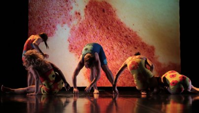 Med njimi je še resna in tiha Jerca Rožnik Novak, ki poglablja lastna stanja, tudi premišljeno gradi vezi, sicer je skupina petih plesalcev prodorna in vročekrvna, ko na sceni zavrtijo ter zasnujejo svoje gibalne pospeške, življenje pa dobi sveži odsev v slišnem ptičjem žvrgolenju. Koreograf in režiser Matjaž Farić se izvirno dotika sinestezije, tudi spleta novo scensko povezavo med umetnostjo in znanostjo. Sinestezija (foto: Sunčan Stone)