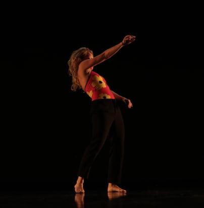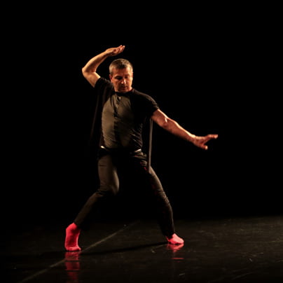 Faričev 30-letni koreografski opus, ki ga je vtisnil v plesno sceno skupaj s svojim avtorskim solističnim izlivom Rdeča – Sled, je že od samih začetkov vijugal po zgodovinskih poteh umetnosti, se posvečal literaturi, še posebej intenzivno pa plesnemu telesu. V svojem zrelejšem obdobju se koreograf vidno usmerja k socialni tematiki, ženski vlogi v današnji družbi, se tudi študijsko poglablja v filozofijo kapitalističnega neoliberalizma ter politike. Prav tako je bilo že pričakovati, da bo koreograf stopil še na področja medicine, ki obravnavajo telo in telesna občutja. In tako so pred tremi leti tudi stekle priprave z izbranimi plesalci na temo sinestezije. Rdeča – Sled (foto: Sunčan Stone)