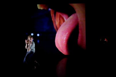V drugem projektu te trilogije z naslovom Sintestezija, tudi obdanem z vizijo rdečila, se izzivajo in oblikujejo napetosti med petimi plesalci, ki burijo čustvene sfere, barvajo karakterje in snujejo medsebojne zaznave v odnosih do določenega telesa, do skupine ali soplesalca. Na sceni se prikaže še četica živalskih podob, zamaskiranih plesalcev, ki procesirajo (telesne) odnose in odzive. Človek, ki je okušal oblike (foto: Željko Stevanič)