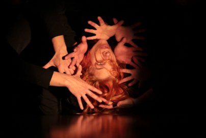 Pet plesalcev je priča dogajanju na sceni, ko sedijo, gledajo in poslušajo, nato pa v svojih razgibanih ter čutno obarvanih odnosih privlačnosti ter odbojnosti abstraktno zarišejo v življenjsko materijo. Kaja Janjič in Leon Marič v svojem plesnem duetu izpisujeta poglavje o nadvladi; Kaja s svojo gibalno karizmo privlači ter navdihuje, medtem ko njeni rdeči lasje vihravo plamtijo po sceni, so tudi barvni antipod svetlemu odsevu lasne valovitosti Urše Rupnik, ki se v duetu spleta s Kristino Rozman, ko se brusita in prijateljujeta v svojih povezavah. Sinestezija, plesalka Urša Rupnik (foto: Sunčan Stone)