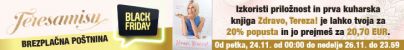 Black Friday oziroma črni petek se odvija tudi na moji spletni strani. V času od petka, 24.11. od 00:00 do nedelje 26.11. do 23.59 izkoristi priložnost in prva kuharska knjiga Zdravo, Tereza! je lahko tvoja z 20% popustom. Namesto 26,90€ jo prejmeš za 20,70€.
