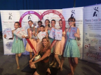 Pa odličja niso tako pomembna, pomembno je, da res uživajo v plesu, na vsakem treningu čutim, kako srkajo znanje, kar je pa še bolje – raziskujejo gib. Vsak dan zato tudi jaz z veseljem čakam treninge in ideje se porajajo vsakodnevno, ker mi plesalci resnično zaupajo in jaz zares verjamem vanje. Cela ekipa plesnega centra je predana plesu in našim plesalcem. … in s plesalkami na Državcu 2017 …