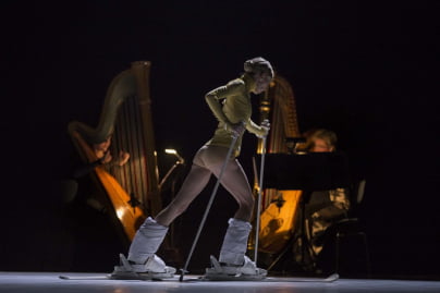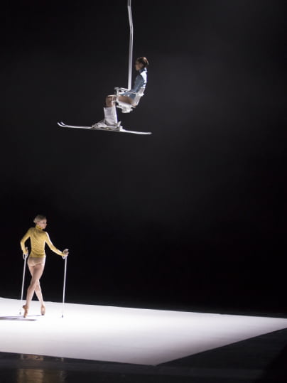 Naslov Hill Harper´s Dream izvirno izpostavi dva vrhova, ki se bočita na sceni: bela tla z rahlim dvigom ter končnim trikotnim zavihkom, ki se v predstavi izpostavi kot sanjski snežni vrh, ter trikotna postavitev dveh harf, ki v prostor fokusirata izvirni kompozicijski vrh. Tudi v tej koreografiji je scena minimalistična, čista in preprosta po svoji postavitvi, ko belina pridobi v siju hladne rezke svetlobe še fantazijski odsev. V ta scenski, likovno zaokrožen prostor vstopa razigrana skupina moških in žensk, sodeč po športno zasnovanih kostumih kostumografa Lea Kulaša je to skupina mladih na belem snežnem oddihu, ki predstavljajo: Ženske – Asami Nakashima, Catarina de Meneses, Ines Petek, Branka Popovici, Jelena Lečić, Tetiana Svetlična; in Moške – Matjaž Marin, tudi asistent koreografa, Ionut Dinita, Sytze Jan Luske, Yuya Omaki, Aleksandru Pilca, Filip Jurič.