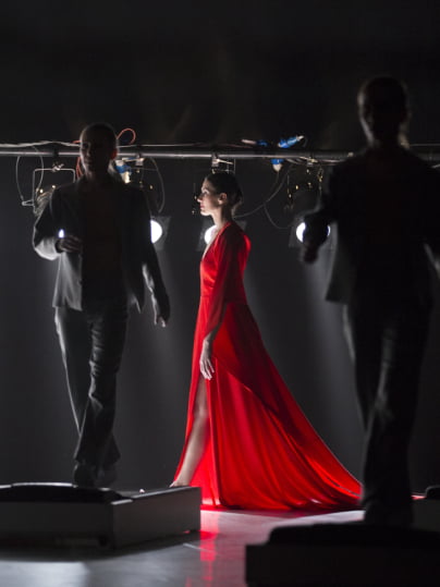 Delovno kostumsko sivino nastopajočih preseka vzvišen mimohod ženske v rdeči svečani eleganci (kostumografija A. Ekman). Scena je tudi primerno odprta za ples, polkrožno pa razdeljena z mejniki, ki se pozneje aktivirajo kot športni rekviziti, svetlobno oblikovanje (Tom Visser)  efektno razgiba scensko dogajanje, poleg seveda koreografske vsebine, ki jo je tako kot ljubljanskemu tudi mariborskemu baletu odlično posredoval asistent koreografije Fernando Troya.
