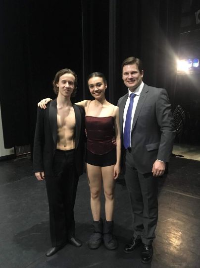 Z Assijo sva prvi dan plesala vsak svojo klasično variacijo. Assija je plesala Kitri (koreografija Petipa) in jaz Ocean and Pearls (koreografija Gorsky). Drugi dan sva plesala moderni duet Radio and Juliet našega priznanega koreografa Edwarda Cluga, za kar sva mu zelo hvaležna. V finale sva prišla s klasičnimi variacijami, na gala večeru sva znova plesala Radio and Juliet. … Jan in Assija z direktorjem tekmovanja Gregom Hatalo …