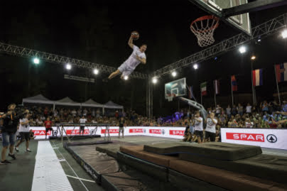 Tekmovanje v podiranju rekorda je potekalo kar pred očmi javnosti, minulo soboto na dogodku Cedevita 3×3 Ljubljana Challenger na Kongresnem trgu. Napeto tekmovanje so Dunking Devils organizirali v sodelovanju z agencijo Extrem in podjetjem Spar, saj so želeli omogočiti oboževalcem, da so v živo prisotni na tem zgodovinskem dogodku. Občinstvo je navdušeno spodbujalo oba tekmovalca ter glasno slavilo, ko je Tomažu v tretjem poskusu uspelo podreti rekord. Dunking Devils so zdaj predali vse dokaze o uspešnem skoku organizaciji Guinness World Records in čakajo na uradno potrditev rekorda.