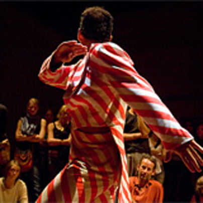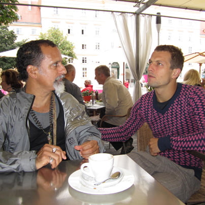Po predstavah, ki sem jih uspela videti v skromnih štirih popoldnevih in večerih, kolikor sem bivala na dunajskem plesnem festival, je moj absolutni zmagovalec David Zambrano. Posebnež s svojim zunanjim videzom, rad se obleče v tuniko, nadene pokrivalo, zaveže rutko okoli vratu, bradica pa je špičasta kot pri Kosobrinu. Zunanja podoba seveda tudi nekaj pove o umetniku samem, a veliko več se je zgodilo na odru, bolje zapisano na prizorišču starega dunajskega kazinoja na trgu Schwarzenbergplatz. Stara patina gemblerske dvorane z velikimi oboki dopušča Zambranu, da jo napolni s svojo plesno idejo. V dveh večerih je predstavil svoje štiri duete, ki jih je skreiral leta 2009 za štiri različne plesalce, ki mu v življenju veliko pomenijo. Seveda je vedno druga oseba dueta Zambrano sam.