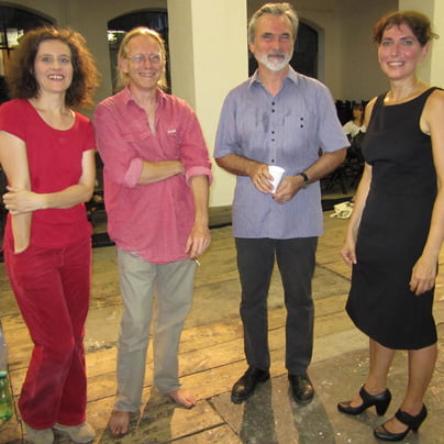 Zadnja predstava, ki pa me je res dotolkla, je bila spet inštalacija plesnega benda LuxFlux z naslovom Filzen. V WUK, nekakšni Metelkovi, se je četverica izvajalcev osredotočila na t.i. politično izjavo, kot so mi zaupali. “Projekt je predlog, da kreiramo polje znakov, ki jih seveda že poznamo, npr. simboli, kompozicije, sledi, v katerih bo vsak od nas našel svojo transformacijo skozi kontakt, dotik ali bližino brez posnemanja,” mi je razlagala Inge Kaindlstorfer, šefica, ki pa to nikakor noče biti, saj pravi, da so v skupini vsi štirje enakopravni. Enakomerna glasbena podlaga predstave, ki je k sreči trajala slabo uro, je bila na trenutke ušesa parajoča, med gledalci pa so bili v glavnem prijatelji in znanci nastopajočih. Kontaktna improvizacija med Inge in Sabino Holzer, moška nista plesala, sta samo igrala na kitari in se nekajkrat premaknila, je temeljila na skromnih korakih in obsežnih grabljenjih po telesih. Obleke pa takšne, kot se za kontakt spodobi, razcapane hlače in razvlečene majice ter preznojena telesa. Ni pomembno, ali so na sceni ali pa izven nje. LuxFlux so preprosti v videzu in pripovedi.