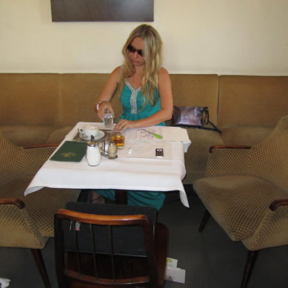Legendarna sto let stara kavarna na Ringstrasse je bila ob napovedani uri polna. Ob “normalnih” gostih se je posedlo nekaj akterjev pod vodstvom koreografa in avtorja predstave z istim naslovom, kot jo nosi kavarna, Hansa Van Den Broecka. Nastala je simpatična zmeda, saj se je Hans preoblekel v natakarja, ki pa je stregel samo izvajalcem predstave. Na nastalo situacijo je nekaj Dunajčanov krepko reagiralo in se drlo nanj, da pač ni sposoben za natakarja in naj raje prepusti službo bolj veščim od njega. Hans Van Den Brueck je belgijski umetnik, ki si je za odrsko prizorišče izbral kar legendarno kavarno Cafe Pruckl.