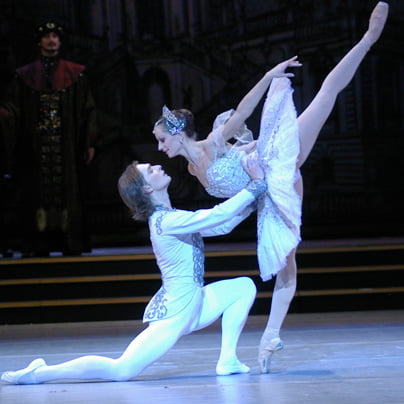Anton Bogov s soplesalko Catarino de Meneses v baletu Giselle koreografa Rafaela Avnikjana.