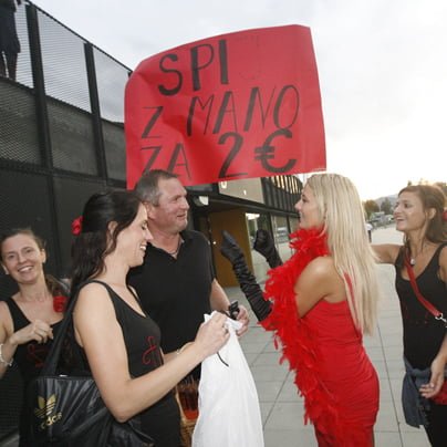 Da je bila dekliščina res mega pripovedujejo tudi Mariborčani, še posebej nogometaši NK Maribor. Vrhunec naj bi dekliščina, ki se je odvijala pod naslovom Spi-j z mano za 2 evra, doživela na Ljudskem vrtu in sicer na tekmi NK Maribor proti Domžalam. Danielin brat Damir Pekič je namreč nogometaš Domžal, ki naj bi dosegel stoti gol na tej tekmi. Danielina ideja je bila, da bi po morebitnem doseženem golu, tekla čez igrišče, a vodstvo nogometnega kluba ni bilo za to, saj so tovrstna dejanja kazensko sankcionirana. Tako je Danieli preostalo samo to, da za dva evra spi-je s selektorjem nogometne reprezentance Matjažem Kekom.