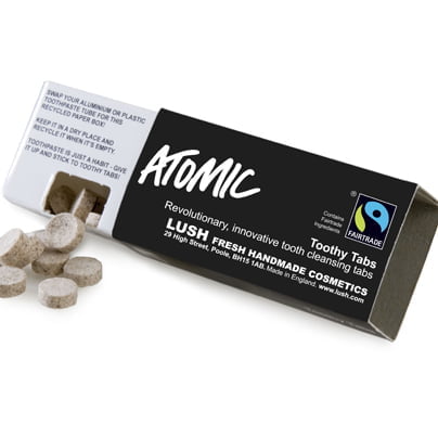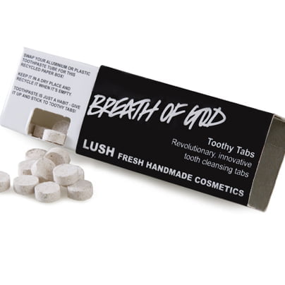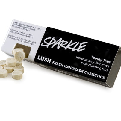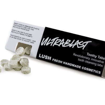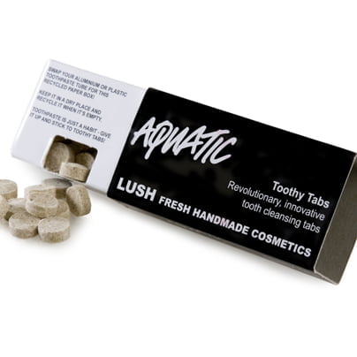 Na tisoče aluminijevih tub od zobnih past, ki jih zavržemo, se kopiči na odlagališčih. Temu se lahko izognemo z uporabo Lushevega novega izuma – zobnih tabletk! Popolnoma nova, patentirana ideja iz Lusha – zobne tabletke – za svoj obstoj ne potrebujejo nobene neekološke embalaže in nobenih konzervansov. Pakirane so v priročni škatlici, ki je narejena iz recikliranih materialov, in ki se jih da ponovno reciklirati. Vsak zavojček vsebuje 40 tabletk, ki zadostujejo za mesečno uporabo (odvisno od tega, kako pogosto umivate zobe). Zobno tabletko preprosto daste v usta, jo nežno zdrobite z zobmi, zmočite krtačko in pričnete s ščetkanjem.