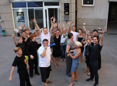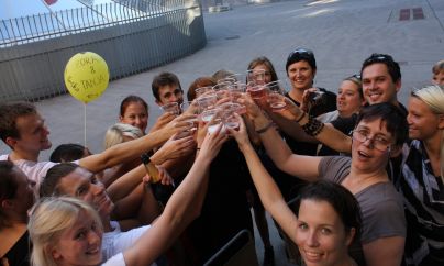 Za Zorana in Tatjano pa so navijali tudi zbrani plesalci v njunem slovenskem klubu, za katerega delata, in sicer v Urški. Nataša Ambrož, plesna trenerka, sodnica in pobudnica družnega navijanja v Urški je njuno pot spremljala od njunih skorajšnjih začetkov: "Ne spomnim se, kdaj sem bila tako živčna. Za Zorana in Tatjano je to vrhunec njune kariere, dan, za katerega sta vsa ta leta delala in se odpovedovala marsičemu. Za trenerja ni večjega zadovoljstva kot doživeti dan, ko se uresničijo dolgoletna pričakovanja." …proslavljalo. (foto: Marko Mesec)
