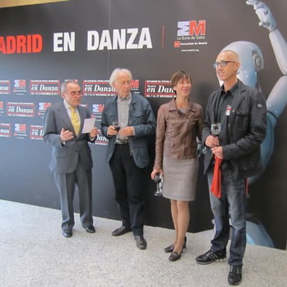 Madridski plesni festival traja vsako leto dvajset novembrskih dni, letošnji je bil že šestindvajseti po vrsti. Madridska plesna platforma, na kateri se predstavljajo mladi in perspektivni plesni ustvarjalci, pa je veliko mlajša. Bienalna prireditev je bila namreč šele tretja. Obema pa je dirigirala umetniška direktorica Ana Cabo, ki ima za izvedbo obeh plesnih projektov na voljo zavidljivih 750.000 evrov. Program madridske platforme je oblikoval francoski producent Didier Michel, ki zastopa tudi kanadsko skupino O Vertigo, pa bruseljsko Peeping Tom, ki je pravkar gostovala v Ljubljani. Umetniška direktorica festivala Ana Cabo v moški družbi podpornikov festivala; levo direktor kulturne promocije Madrida, Amado Gimerez, desno kurator festivala Didier Michele.