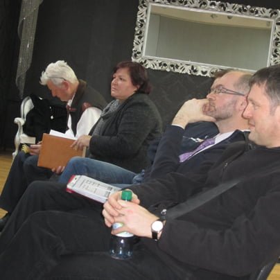 Precej dolg nagovor predsednika sekcije Hermana Tomažiča je opozoril na točke za razpravo, a časa, da bi se dotaknili vseh, je bilo absolutno premalo. Po njegovem mnenju so najbolj pereči problemi splošna komunikacija med klubi in Plesno zvezo, ki pa je vse boljša (poudaril je uvajanje aplikacijskega sistema), kolikor lahko klubi sploh prispevajo k organizaciji kvalifikacijskih in rejting turnirjev ter državnih prvenstev v okviru Slovenske plesne lige, področje sojenja, področje državne reprezentance in področje promocije. Za leto 2012 je napoved, da bo državnih sredstev za 30 odstotkov manj kot leto poprej, kar pomeni, da so na Plesni zveza že ukrepali. Na državna prvenstva se ne vabi več tujih trenerjev, razpolovile so se kotizacije za udeležbo na turnirjih mednarodne plesne zveze, tako da zdaj polovico kotizacije prispeva zveza, polovico pa klub, za katerega tekmuje plesni par, v celoti se ukine nagradni sklad za rejting turnirje, štartnine se povečajo. To so tisti najbolj v nebo vpijoči ukrepi, Tomažič pa je bil mnenja, da je nekaj tudi spodbudnih. Kot na primer, da Plesna zveza prevzame strošek izdelave odlikovanj na državnih prvenstvih, štartnine, ki jih prispevajo tuji plesalci, ostanejo v klubu, ki je tekmovanje organiziral, še bolj se bodo posvetili organizaciji reprezentančnih priprav, na katerih bo omogočena udeležba vsem plesalcem, uvajajo pa tudi bonuse za priprave in športno opremo vsem parom do petdesetega mesta na mednarodni lestvici. Karmen Arko, Zdenko Potočar in Miran Pritekelj.