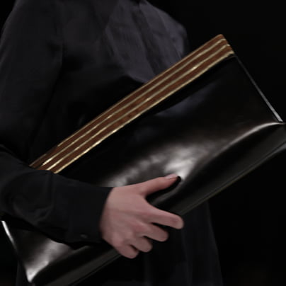 Na modnih brveh sta me najbolj presunila Peter Movrin in Marjeta Grošelj. Sta tista, ki sta potešila mojo lakoto po ekstravaganci. Peter Movrin s svojimi "nahrbtniškimi" oblekami in črno-belimi sandali z visoko platformo ter Marjeta Grošelj s svojimi geometrijskimi torbicami, ki bi jih lahko označili kar kot "mini garsonjere", saj se lahko s slednjimi primerjajo tako po ceni in kot tudi velikosti. Potolažimo se lahko s tem, da je to investicija v nesmrtno torbico. Dandanes srečujem hčere, vnukinje mogoče tudi vnuke, kako se borijo za vsaj eno vintage torbico z velikim G. … Marjeta Grošelj …