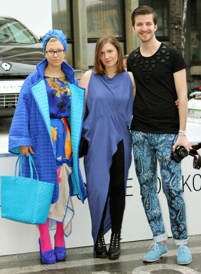Navdušile pa niso le kreacije na modnih brveh, temveč tudi staylingi obiskovalcev. Impresionarano sem ugotovila, da je naš narod začel bolj odprto sprejemati ekstravagantne modne mikse, ki pa niso več označeni za kikse. Ni več prezirljivih oziroma začudenih pogledov na kičaste najlonke, prevelike srajce in srebrne oxfordke. Kino Šiška je te tri dni predstavljal nekakšno zatočišče za tiste, ki smo radi malo čudaški v svojem slogu oblačenja in željni inspiracije domačih oblikovalcev. … blogerka Eva Ana Kazič, ki se ne boji barv s prijateljem Anžetom in prijateljico.