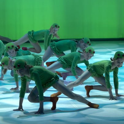 Otroci 3B pripravnice pod vodstvom Jane Kovač pa so raziskovali Ljubljansko barje, kjer med ogrožene vrste sodijo tudi zelena rega, urh, rjava in zelena žaba. Poskočne zelene in dolgokrake "žabe" so v prispodobi luči in video projekcije zaplavale po odru in nam približale svet barjanskih žab, bilo pa jih je toliko, da ni kazalo, da so kakorkoli ogrožena vrsta ….