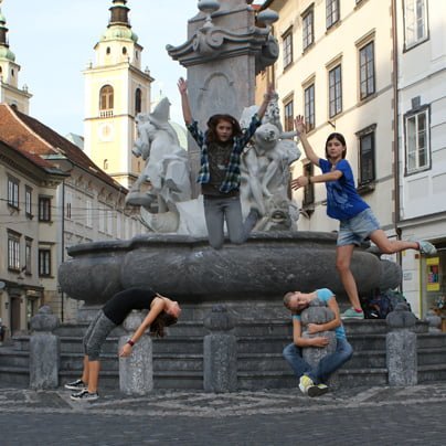 In še ena učenka plesnega oddelka za sodobni ples je s svojim prispevkom doprinesla k likovni podobi predstave, učenka 5. a razreda Petra Hlebš, ki je poskrbela za obliko projekcij in lično podobo gledališkega lista. Za fotografije, ki so se vrstile pred vsako napovedano točko in oznanjale kako ljubljansko znamenitost ter v objektiv zajele nasmejane trenutke mladih plesalcev, pa sta poskrbele Jana Kovač Valdés in študentka Akademije za ples v Ljubljani Veronika Valdés (svoj čas tudi gojenka KGBLin lanska diplomantka Umetniške plesne gimnazije), ki jo zadnje čase velikokrat srečujemo s fotografskim aparatom v rokah, ko skoncentrirano sledi kakemu plesnemu dogodku in tako odkriva še en svoj talent. Naš Robbov vodnjak skozi objektiv Veronike Valdes.