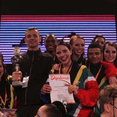 Tradicionalno se v začetku decembra odpleše v Rieso, najprej na svetovno v šov plesih, nato še v stepu, ki pravkar poteka. V Erdgas Areni so se plesalci iz 24 držav potegovali za naslove najboljših šovarjev na svetu. Zbrali smo vtise treh slovenskih kreativcev, in sicer Mitje Popovskega, Mimi Marčac Mirčete in Matevža Česna. Mitja Popovski v družbi varovancev iz Južne Afrike."Kaj naj rečem, po tako uspešnem letu sem ostal kar brez besed. Še vedno nisem dojel, kako velik uspeh je bilo zadnje in vsa ostala tekmovanja. Show tekmo v Riesi je zaznamoval dvoboj Slovenije in Južne Afrike. Gledalci ter plesalci so prav uživali v izmenjavi medalj in obeh himen. Plesalci so izkoristili druženje ter sklenili mnogo novih vezi, super. Z visoko kvaliteto sem bil kar presenečen, saj po vrhunskem svetovnem prvenstvu v modernu v Frankfurtu nisem pričakoval še ene močne tekme, pa smo jo vseeno doživeli. Še nikoli v življenju nisem prejel toliko pohval in sem izjemno ponosen nase in na svoje plesalce. Upam, da bomo takšnega odziva kot v tujini deležni tudi doma in da o tem izvejo tudi ljudje, ki se ne vrtijo le v plesnih krogih. Lep pozdrav iz Riese, kjer nas čaka še svetovno prvenstvo v stepu," je za naš portal sporočil Mitja Popovski, zagotovo letošnji najuspešnejši koreograf. Mimi Marčac Mirčeta in Mitja Popovski.