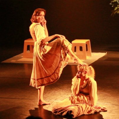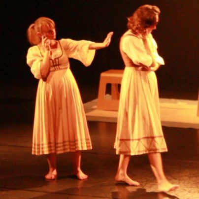 Predstava ni premočrtna, poglablja in dramatizira se v gibalnih izolacijah, ob pavzah, zastojih in v pospeških ter se še dodatno stimulira v upočasnjenem gibanju, ki domiselno ilustrira dolgoveznost istovetnega. Prijetno dozo duhovitosti dodajo nenavadne gibalne zamrznitve, ko se gib ustavi in ilustrira naslanjanje na nevidni predmet – stol, steber …, del telesa pa v ravnotežju in za trenutek obvisi v zraku. Škoda, da koreografinja ni posvetila več pozornosti ravno tem svojstvenim gibalnim dimenzijam in se tudi potrudila, da bi se pojavnost mobilnega telefona ilustrirala bolj kot oblika plesno gibalne abstrakcije, ne pa da se ga ves čas realno in vidno drži naslonjenega z eno roko ob ušesu … Sčasoma ta realna in ustaljena drža postane celo moteča, predvsem pa zavira gibalni potencial obeh plesalk. …
