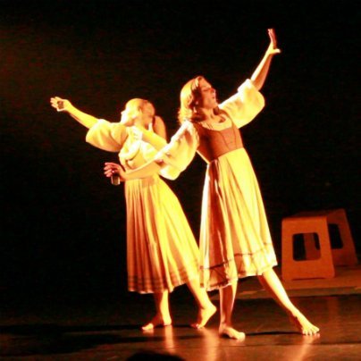 Plesnitev Jasne Zavodnik se je predvsem izkazala kot specifična plesno dokumentarna oblika, ki kontradiktorno izpisuje dve časovni opredeljenosti: plesni čas osnovnih baletnih korakov, ki se največkrat uporabljajo v učnih fazah karakternih plesov oziroma v kultiviranih oblikah narodnega poplesavanja, in čas sodobne zasvojenosti mlade generacije z novodobno tehnološko igračo – mobilnim telefonom. Nastopajoči plesalki, Evin Hadžialjević in Špela Tovornik, sta oblečeni v obleki, ki zaznamujeta oblačilno obdobje kmečkih deklet kakšno stoletje in več nazaj, fundus ravno primeren za dekliška narodna izročila. Torej gledamo lahkotno plesno poskakovanje nekega drugega časa, v kontrast temu pa plesalki ves čas držita v roki in k ušesu tiščita vsaka svoj mobilni telefon. Postavljena scena v kotu zadnjega dela dvorane je podobna mešanici uporabnih in nametanih predmetov. …
