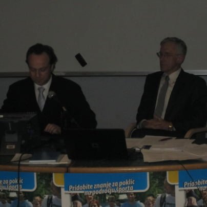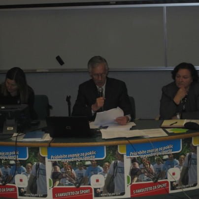 Drago Šulek je svojo predstavitev začel z besedami, da ne bo fensi, ker ni imel časa, saj je cel vikend pazil štiri vnuke. "Brez težav bi se umaknil kandidatu, ki bi imel izkušnje na področju organizacije in ustanovitve klubov, te pa Mekicar nima. Vse se da izboljšati, ampak tole diši po revoluciji in znano je, da revolucija žre svoje otroke. Drugo leto bo šestdeset let od ustanovitve Plesne zveze in to je za nas pomembno obdobje. Obnovili in dopolnili bomo knjigo Slovenska plesna pravljica. Jaz ne dajem nikakršnih obljub, delal bom kot do sedaj, tudi ta razprava mi bo dala nekaj idej kako naprej. V mojem mandatu nisem naredil ničesar, kar bi omejevalo sekcije. Vi ,gospod Mekicar, pa ste z dejanji in objavami v medijih oblatili imidž Plesne zveze, ki ga bo zelotežko popraviti," se je spustil z vajeti zdaj že ponovno izvoljeni predsednik Drago Šulek in ponovno kot mantro ponavljal, kaj vse je naredil na področju promocije plesa v medijih. Stari/novi predsednik Drago ŠUlek je vodil skupščino, desno Karmen Arko, levo Silvestra Perčič, ki sta predstavljali delovno predsedstvo skupščine.