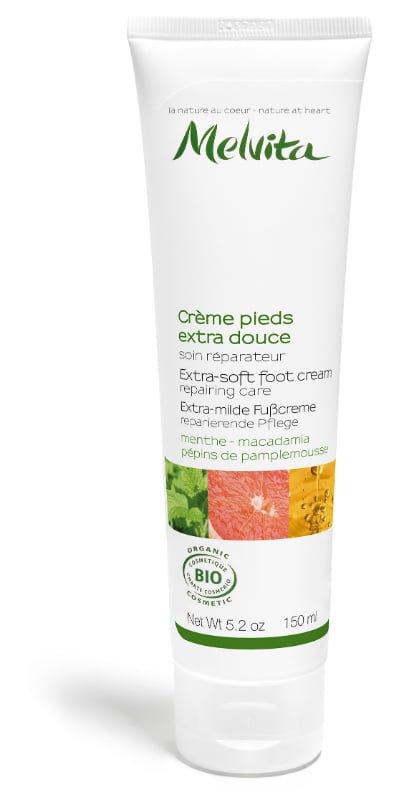 Stopala so poleti zaradi odprtih obuval in bosih nog še posebej izpostavljena zunanjim dejavnikom, zato je koža na podplatih pogosto suha in razpokana, stopala pa so zaradi vročine utrujena. Privoščite vašim stopalom popolno nego z MELVITINO certificirano organsko posebno nežno kremo za stopala, ki blaži, osvežuje, sprošča, vlaži in mehča utrujena, vroča in poškodovana stopala. Obogatena je z očiščevalnimi aktivnimi sestavinami, ki preprečujejo razvoj bakterij.