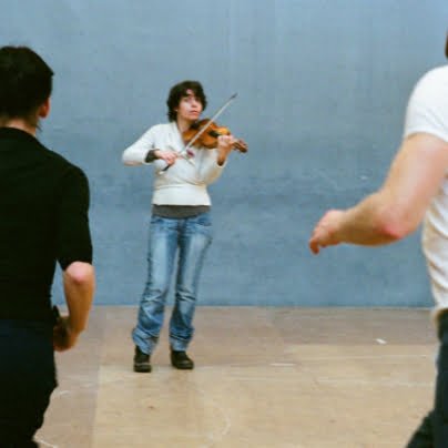 Predstava se začne v popolni temi, ko se po nekaj trenutkih tišine zasliši glas violine, in ker je tema in se nič ne vidi, se prepustiš zvokom popolne violinske skladbe, ki glasbeni razpon violine predstavi v celosti njene muzikalične strukture. Vsi, ki so pričakovali ples, so se nepričakovano znašli na solističnem violinskem koncertu, tako si v gosti temi povsem osredotočen na skladbo. Ko se oči navadijo teme, pa nenadoma ponovno spregledaš, v popolni temi ugledaš silhueto violinistke, kako na odprtem odru igra na svoj inštrument. Ko se praktično četrturno poslušanje glasbe zaključi, ponovno zasije luč in virtuozinja zapusti oder pospremljena z aplavzom. V drugem delu se oder osvetli s scensko simulacijo (scenografija  Michel François), ko vstopita plesalca. Enostavno in lahkotno stečejo njuni skoki v tišini, ko se vrstijo plesno-gibalna sosledja nenavadnih struktur, ki se kot po nekakšni nevidni formuli tudi vsake toliko časa repetirajo. Uzreš nove gibalne oblike, kot je n.pr. njena hoja v ležeči pozi po njegovih stopalih, ki so trdno usidrana na tla. Sprašuješ se, zakaj ravno na tistem mestu taka likovno gibalna kompozicija, ki se po nekem neznanem ravnotežnem sistemu spreobrne v nasprotno stran nenavadne tehtnice in je potem on tisti, ki leže hodi po njenih stopalih, deluje pa zanimivo in prav prijetno. Drugič se zgodijo kratki tresljaji rok odprtih dlani, kar naenkrat in za trenutek se zgodijo ter se ponovno na istem mestu tudi čez čas obnovijo. Prva misel, ki se mi je v tej tišini utrnila, je, da Ana TDK zapušča talno kontaktno improvizacijo in se spogleduje z različnimi plesnimi tehnikami, ki jih ponovno oblikuje na svoj izviren način; torej postavlja se na svoje plesne noge. Plesne oblike, ki jih ustvarjata, so zračne, različnih hitrosti, sila pospešene ali vidno upočasnjene, gledajo pa se kot prijetna plesna igra dveh solistov, kot skupno iskanje skupnih izhodišč in kot posamični užitki v izvajanjih enakih gibov; ko drug drugega oponašata in se občasno ponavljata. Ona je nekam zadržana, včasih njun gibalni tok tudi željno podpira, on je bolj prodoren in večkrat vodilen. Tišina njune radožive in gibalno bogate  plesne kompozicije ni motila, bila sta raziskovalca prostora, občasno tudi scensko osenčena, in pravzaprav tudi dovolj ritmično slišna ne le z dihom in občasnimi glasovnimi toni, ampak predvsem v dodanem ritmu šumov ob izvajanju korakov in rahlih udarcev njune športne obutve, ki se je slišno lepila po plastiki plesnih tal. Ta živa slikovita odrska forma, ki daje občutek tudi scenskega orisa dueta po poteh življenja, me je spomnila na abstraktni ambient zarisanih prostorskih poti slike The Morning Star, slikarja Joana Miróa (1893-1983). Par se poslovi po času, ki sem ga enačila z dolžino skladbe prvega dela, in sproži novi val aplavza. Da so gibi in postavitve ATDK nekaj novega, kaže tudi, kako hitro jih drugi prevzemajo in o njih razmišljajo. Taka je npr. ravnotežna poza, ko se postavi stopalo proste noge ob gležnju stoječe noge (cou-de-pied). Položaj je znan in poimenovan že v klasični baletni formi, gibalno zanimivo pa se je izkazalo dinamično izhodišče iz te statične forme. In ravno ta element je izbral plesalec, pedagog in koreograf Matej Kejžar za predmet študije gibalnih in ravnotežnih premikov izbranih tečajnikov kak mesec prej na svoji delavnici v času Co-festivala v Ljubljani.