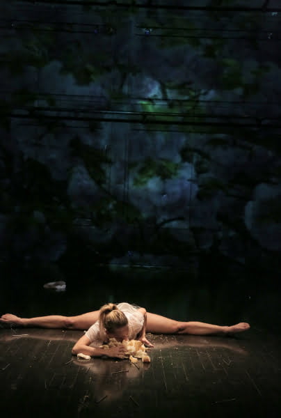 In tako kot smo vajeni v koreografijah Vesne Dvornik, je tudi v njeni najnovejši uprizoritvi Klic gozda ali poljub tvoje matere znova zavela spevna (plesna) pesem ženske anime.
